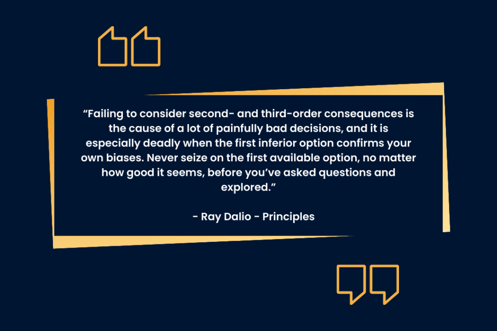 Second Order Thinking will yield more quality decision making, but be careful not to go too crazy with it.